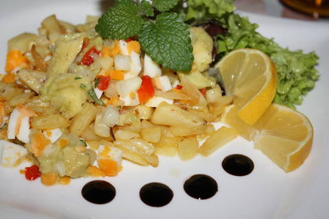5.Die Avocadostücke in einer Schüssel mit dem Zitronensaft,dem Rapsöl und dem Balsamicoessig marinieren.