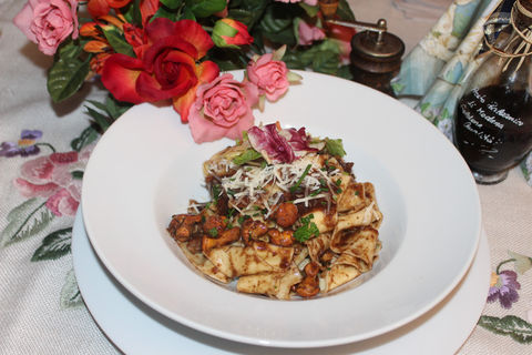 Badische Nudeln mit Pfifferlingen und Rehragout