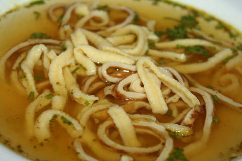 1.Spätzle herstellen nach dem Spätzlerezept:Die Rinderbrühe: