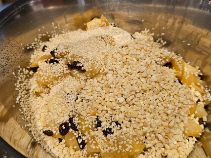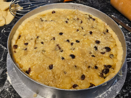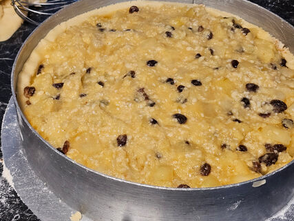 5.Die Apfelmasse mit Mürbteig bedecken ca 0,3cm dick
