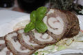 Den Chicoreesalat auf Teller verteilen und die Rouladencheiben daruf verteilen, beliebig garnieren und mit Beilagen verteilen