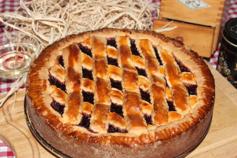 11.Die Streifen nun gitterförmig auf die Marmelade legen.