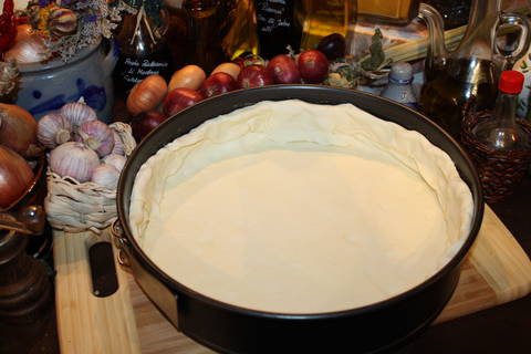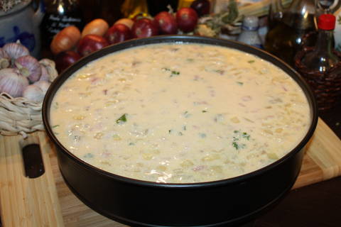 10.Die Zwiebeltorte bei 200 Grad (Umluft) 30 Minuten backen,