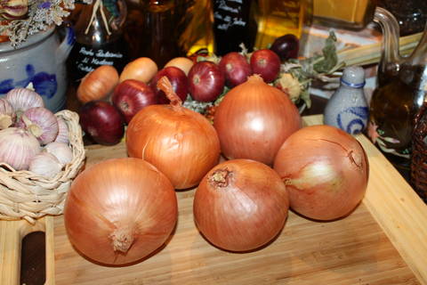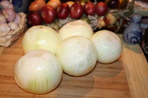 3.Die Gemüsezwiebeln,schälen und in mittlere Würfel schneiden.