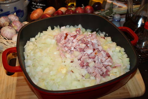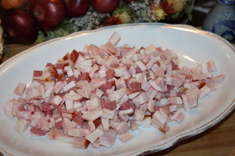 4.Den Schwarzwälder Bauchspeck ebenfalls in kleine Würfel schneiden