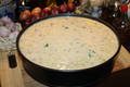 9.Dann die Eier-Sahnemasse darunterrühren und in die Springform füllen.