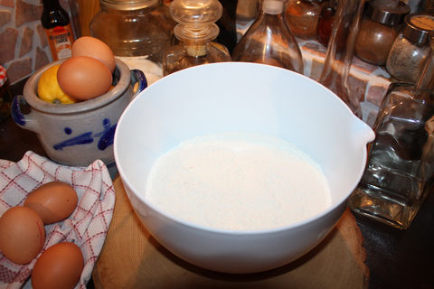 6.Die Eier aufschlagen, mit einem Schneebesen gut verrühren und langsam nach und nach unter die Buttermasse rühren