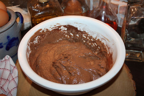 10.Unter einen Teil den Kakao und die geschmolzene Kuvertüre unterrühren.