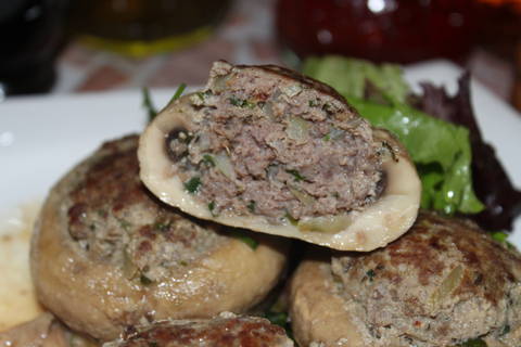1.Die Champignons mit der Hackfleischfüllung füllen.
