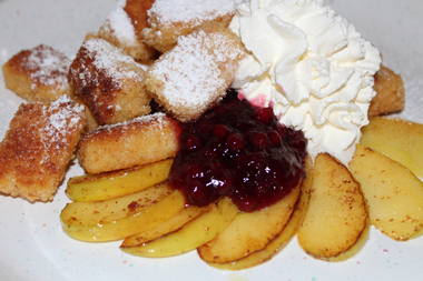 8.Auf jedes Tortenstück einen Sahnetupfen spritzen